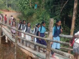 ಅಪಾಯದಲ್ಲಿರುವ ಮರದ ಸೇತುವೆಯಲ್ಲೇ ಶಾಲಾ ಮಕ್ಕಳ ಓಡಾಟ