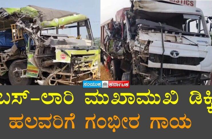 ಬಸ್–ಲಾರಿ ಮುಖಾಮುಖಿ ಡಿಕ್ಕಿ, ಚಾಲಕನ ಕಾಲು ತುಂಡು, ಹಲವರಿಗೆ ಗಂಭೀರ ಗಾಯ