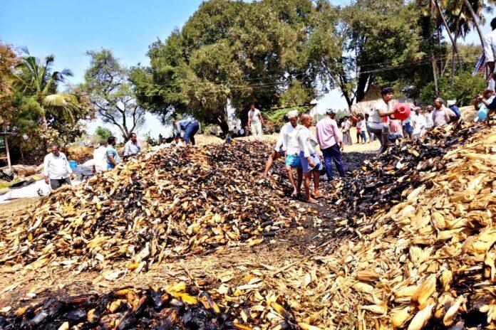 ವಿದ್ಯುತ್ ಶಾರ್ಟ್ ಸರ್ಕ್ಯೂಟ್ 8 ಲಕ್ಷ ಮೌಲ್ಯದ ಗೋವಿನಜೋಳ ಬೆಂಕಿಗೆ ಆಹುತಿ