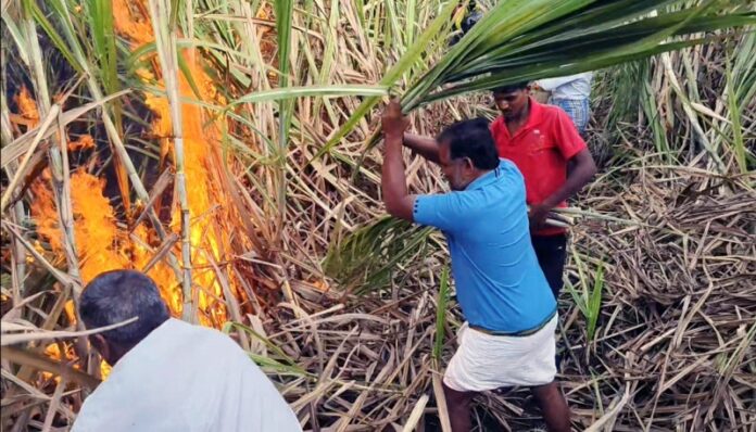 ಇನ್ನೆನೂ 15 ದಿನಗಳಲ್ಲಿ ಕಬ್ಬು ಕಟಾವು ಮಾಡಲಾಗುತ್ತಿತ್ತು. ಆದರೆ ವಿದ್ಯುತ್ ಸ್ಪರ್ಶದಿಂದ ಬೆಂಕಿ ಹೊತ್ತಿಕೊಂಡು ನೋಡನೋಡುತ್ತಲೆ ಗಾಳಿ ರಭಸಕ್ಕೆ ನಾಲ್ಕೈದು ಎಕರೆ ಕಬ್ಬನ್ನು ಬೆಂಕಿ ತನ್ನ ಕೆನ್ನಾಲಿಗೆ ಚಾಚಿ ದಘದಘ ಉರಿಯತೊಡಗಿತು. ಕೆಲ ರೈತರು ಸೇರಿ ನೀರು ಬಳಸಿ, ಜೆ.ಸಿ.ಬಿ ತಂತು ಬೆಂಕಿ ನಂದಿಸಲು ಹರಸಾಹಸಪಟ್ಟರೂ ಸಾಧ್ಯವಾಗಲಿಲ್ಲ.