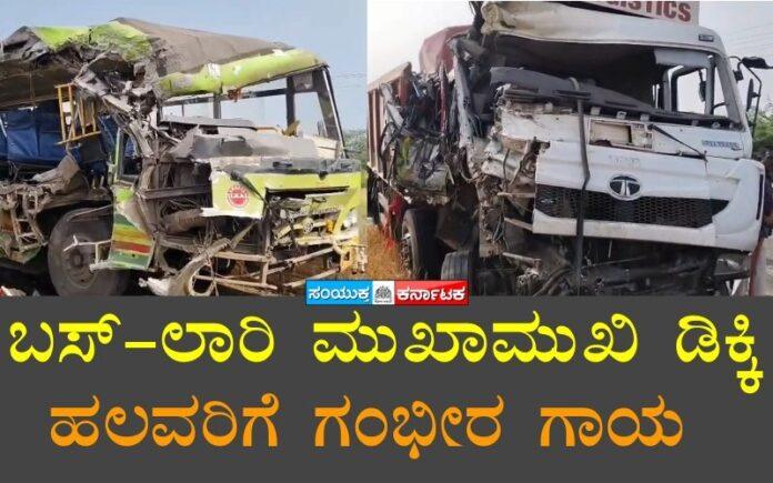 ಬಸ್–ಲಾರಿ ಮುಖಾಮುಖಿ ಡಿಕ್ಕಿ, ಚಾಲಕನ ಕಾಲು ತುಂಡು, ಹಲವರಿಗೆ ಗಂಭೀರ ಗಾಯ