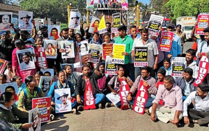 ಬೆಳಗಾವಿ: ರಾಜ್ಯ ಸರ್ಕಾರವು ಸರಕಾರಿ ಶಾಲೆಗಳನ್ನು ಮುಚ್ಚಲು ಮುಂದಾಗಿರುವ ಕ್ರಮವನ್ನು ತೀವ್ರವಾಗಿ ಖಂಡಿಸಿ, ವಿದ್ಯಾರ್ಥಿಗಳು ಹಾಗೂ ವಿದ್ಯಾರ್ಥಿ ಸಂಘಟನೆಗಳು ಮಂಗಳವಾರ (ಡಿ.16) ಬೆಳಗಾವಿ ನಗರದಲ್ಲಿ ಬೃಹತ್ ಪ್ರತಿಭಟನೆ ನಡೆಸಿದರು. ಎಐಡಿಎಸ್ಒ (AIDSO) ನೇತೃತ್ವದಲ್ಲಿ ನಡೆದ ಈ ಪ್ರತಿಭಟನೆ ನಗರದ ಚನ್ನಮ್ಮ ವೃತ್ತದಲ್ಲಿ ನಡೆಯಿತು.