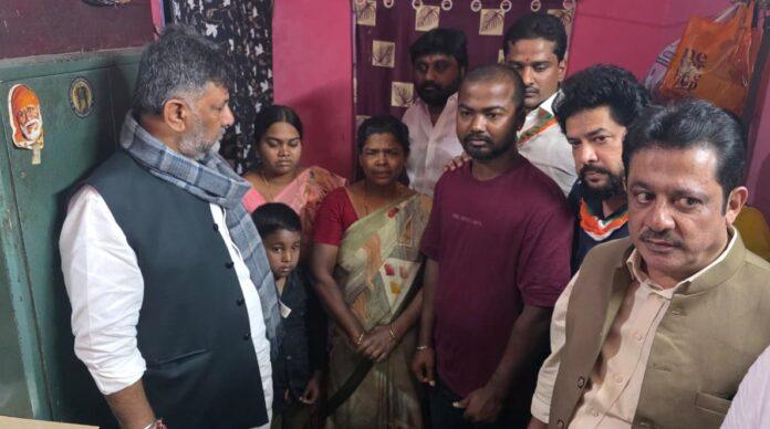 ಬಳ್ಳಾರಿ: ನಗರದಲ್ಲಿ ಬ್ಯಾನರ್ ಕಟ್ಟುವ ವಿಚಾರಕ್ಕೆ ಸಂಬಂಧಿಸಿ ಇತ್ತೀಚೆಗೆ ನಡೆದ ಗಲಭೆಯಲ್ಲಿ ಗುಂಡೇಟಿಗೆ ಬಲಿಯಾದ ಕಾಂಗ್ರೆಸ್ ಕಾರ್ಯಕರ್ತ ರಾಜಶೇಖರ್ ಅವರ ಕುಟುಂಬವನ್ನು ಉಪಮುಖ್ಯಮಂತ್ರಿ ಡಿ.ಕೆ. ಶಿವಕುಮಾರ್ ಅವರು ಇಂದು ಭೇಟಿ ಮಾಡಿ ಸಾಂತ್ವನ ಹೇಳಿದರು.