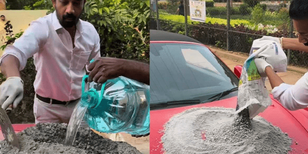 ಬೆಂಗಳೂರಿನ ರಸ್ತೆ ಹೊಂಡಗಳ ಬಗ್ಗೆ ಸಾರ್ವಜನಿಕರು ಆಕ್ರೋಶ ವ್ಯಕ್ತಪಡಿಸುವುದು ಸಾಮಾನ್ಯ. ಆದರೆ ಅಖಿಲ್ ಯಾದವ್ ಎಂಬುವವರು ಮಾಡಿರುವ ಈ ಸಾಹಸ ಈಗ ಸಾಮಾಜಿಕ ಜಾಲತಾಣಗಳಲ್ಲಿ ಭಾರಿ ಚರ್ಚೆಗೆ ಗ್ರಾಸವಾಗಿದೆ. ತನ್ನ ಕೆಂಪು ಬಣ್ಣದ ಐಷಾರಾಮಿ ಪೋರ್ಷೆ ಕಾರಿನ ಬಾನೆಟ್ ಮೇಲೆ ಸಿಮೆಂಟ್ ಮತ್ತು ನೀರನ್ನು ಸುರಿದು, ಅದನ್ನು ಅಲ್ಲೇ ಮಿಕ್ಸ್ ಮಾಡಿ ರಸ್ತೆಯ ಗುಂಡಿಯನ್ನು ಮುಚ್ಚುತ್ತಿರುವ ವಿಡಿಯೋ ಈಗ ಎಲ್ಲೆಡೆ ವೈರಲ್ ಆಗಿದೆ. ಕೋಟಿ ಬೆಲೆಯ ಕಾರಿನ ಮೇಲೆ ಹೀಗೆ ಸಿಮೆಂಟ್ ಕಲಸುತ್ತಿರುವುದನ್ನು ಕಂಡು ನೆಟ್ಟಿಗರು ಒಂದು ಕ್ಷಣ ಶಾಕ್ ಆಗಿದ್ದರು.