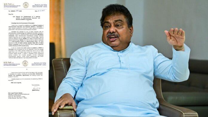 Home ನಮ್ಮ ಜಿಲ್ಲೆ ಬೆಂಗಳೂರು ಕರ್ನಾಟಕದಲ್ಲಿ NIPER ಸ್ಥಾಪನೆಗೆ ಸಚಿವ ಎಂ.ಬಿ. ಪಾಟೀಲ್ ಮನವಿ