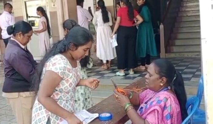 ಚಿಕ್ಕಮಗಳೂರಿನ MES College ನಲ್ಲಿ ನಡೆದ ಈ ಘಟನೆ, ಪರೀಕ್ಷಾ ನಿಯಮಗಳ ಅನುಷ್ಠಾನದ ಬಗ್ಗೆ ಪ್ರಶ್ನೆಗಳನ್ನು ಎಬ್ಬಿಸಿದೆ. ಲೋಹದ ಆಭರಣಗಳಿಗೆ ನಿಷೇಧ ಇರುವ ಹಿನ್ನೆಲೆಯಲ್ಲಿ, ಮೂಗುತಿ ತೆಗೆದುಹಾಕಲು ಸಾಧ್ಯವಾಗದ ವಿದ್ಯಾರ್ಥಿನಿಯರನ್ನು ಪರೀಕ್ಷಾ ಸಿಬ್ಬಂದಿ ತಾತ್ಕಾಲಿಕವಾಗಿ ಗಮ್ ಟೇಪ್ ಅಂಟಿಸಿ ಒಳಗೆ ಬಿಡುವ ನಿರ್ಧಾರ ಕೈಗೊಂಡಿದ್ದಾರೆ.
