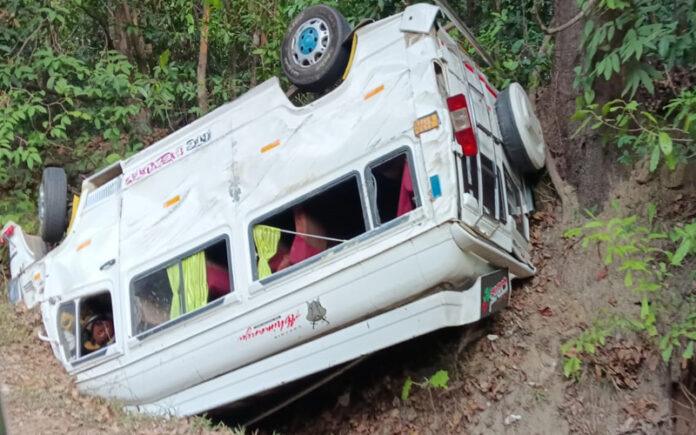 ಚಾರ್ಮಾಡಿ ಘಾಟ್ನ ಒಂಬತ್ತನೇ ತಿರುವಿನಲ್ಲಿ ವಾಹನದ ಬ್ರೇಕ್ ಫೇಲ್ ಆಗಿ ಚಾಲಕನ ನಿಯಂತ್ರಣ ತಪ್ಪಿದ ಪರಿಣಾಮ ವಾಹನ ಪಲ್ಟಿಯಾಗಿದೆ. ಅಪಘಾತದಲ್ಲಿ ಮೇಲನಹಳ್ಳಿ ನಿವಾಸಿ ಶೇಖರಪ್ಪ (59) ಅವರು ಸ್ಥಳದಲ್ಲೇ ಮೃತಪಟ್ಟಿದ್ದಾರೆ. ಉಳಿದ 9 ಮಂದಿಗೆ ಗಂಭೀರ ಗಾಯಗಳಾಗಿದ್ದು, ಅವರನ್ನು ತಕ್ಷಣವೇ ಸಮೀಪದ ಆಸ್ಪತ್ರೆಗೆ ದಾಖಲಿಸಿ ಚಿಕಿತ್ಸೆ ನೀಡಲಾಗುತ್ತಿದೆ. ಗಾಯಗೊಂಡವರಲ್ಲಿ ಮಕ್ಕಳು ಸೇರಿದಂತೆ ಹಲವರ ಸ್ಥಿತಿ ಚಿಂತಾಜನಕವಾಗಿರುವ ಮಾಹಿತಿ ಲಭ್ಯವಾಗಿದೆ.