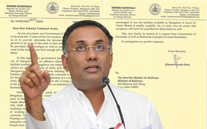 ಮಂಗಳೂರು–ಬೆಂಗಳೂರು: ದಿನಕ್ಕೆ ಮೂರು ವಂದೇ ಭಾರತ್ ರೈಲು ಸೇವೆಗಾಗಿ ಕೇಂದ್ರಕ್ಕೆ ದಿನೇಶ್ ಗುಂಡೂರಾವ್ ಮನವಿ