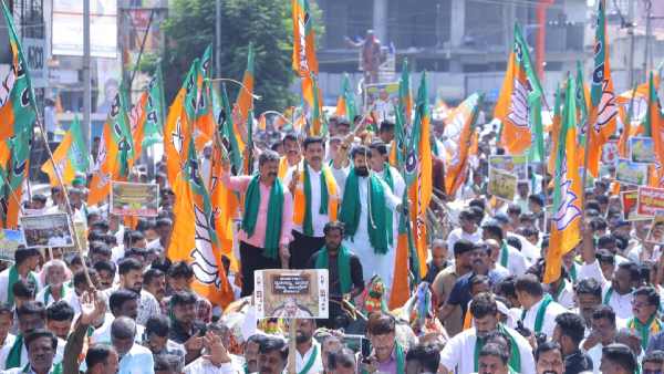 ಪಕ್ಷದ ರಾಜ್ಯಾಧ್ಯಕ್ಷ ಬಿ.ವೈ. ವಿಜಯೇಂದ್ರ ಮತ್ತು ವಿಪ ಸದಸ್ಯ ಸಿ.ಟಿ. ರವಿ ನೇತೃತ್ವದಲ್ಲಿ ಪಕ್ಷದ ನಾಯಕರುಗಳು, ಮುಖಂಡರು ಮತ್ತು ಕಾರ್ಯಕರ್ತರು, ರೈತರೊಂದಿಗೆ ಇಲ್ಲಿನ ಅಂಬೇಡ್ಕರ್ ವೃತ್ತದಲ್ಲಿ ಬಾಬಾ ಸಾಹೇಬರ ಪ್ರತಿಭಟನೆಗೆ ಮಾಲಾರ್ಪಣೆ ಮಾಡಿ, ಬಾರ್ಕೋಲು ತೋರಿಸಿ ರಾಜ್ಯದ ಕಾಂಗ್ರೆಸ್ ಸರ್ಕಾರಕ್ಕೆ ಎಚ್ಚರಿಸಿದರು. ಅಲ್ಲಿಂದ ಎತ್ತಿನ ಬಂಡಿಯ ಮೂಲಕ ಉಪ ವಿಭಾಗಾಧಿಕಾರಿ ಕಚೇರಿಯ ಮುಂದೆ ಬಹಿರಂಗ ಸಭೆ ನಡೆಸಿ, ಕಾಂಗ್ರೆಸ್ ವಿರುದ್ಧ ಘೋಷಣೆ ಕೂಗಿ ಆಕ್ರೋಶ ವ್ಯಕ್ತಪಡಿಸಿದರು.