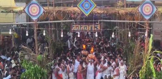 ದಾವಣಗೆರೆ: ನಗರದ ಹಳೆಪೇಟೆಯಲ್ಲಿ ನಡೆಯುವ ಪ್ರಸಿದ್ಧ ಶ್ರೀ ವೀರಭದ್ರೇಶ್ವರ ಸ್ವಾಮಿಯ ಕೊಂಡೋತ್ಸವವು ಈ ಬಾರಿಯೂ ಭಕ್ತಿ, ಸಂಪ್ರದಾಯ ಮತ್ತು ಸಡಗರದ ವಾತಾವರಣದಲ್ಲಿ ಜರುಗಿತು. ಈ ಧಾರ್ಮಿಕ ಆಚರಣೆಯಲ್ಲಿ ಸಚಿವ ಎಸ್.ಎಸ್. ಮಲ್ಲಿಕಾರ್ಜುನ ಅವರು ಕುಟುಂಬ ಸಮೇತರಾಗಿ ಭಾಗವಹಿಸಿ ಅಗ್ನಿಕುಂಡ ಹಾಯುವ ಮೂಲಕ ಭಕ್ತಿ ಮೆರೆದರು. ವಿಶೇಷವಾಗಿ, ದಾವಣಗೆರೆ ದಕ್ಷಿಣ ವಿಧಾನಸಭಾ ಕ್ಷೇತ್ರದ ಉಪಚುನಾವಣಾ ಕಣದಲ್ಲಿರುವ ಅವರ ಪುತ್ರ ಸಮರ್ಥ್ ಶಾಮನೂರು ಮತ್ತು ಪುತ್ರಿ ಶ್ರೇಷ್ಠ ಕೂಡ ತಂದೆಯೊಂದಿಗೆ ಕೊಂಡ ಹಾಯ್ದು ಜನರ ಗಮನ ಸೆಳೆದರು. ಕೊಂಡೋತ್ಸವಕ್ಕೂ ಮುನ್ನ … Continue reading ದಾವಣಗೆರೆ: ವೀರಭದ್ರೇಶ್ವರ ಕೊಂಡ ಹಾಯ್ದ ಸಚಿವ ಮಲ್ಲಿಕಾರ್ಜುನ ಕುಟುಂಬ
