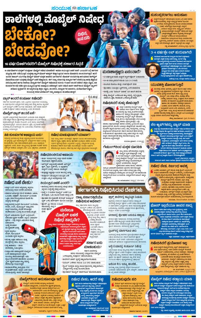 ಮೊಬೈಲ್ ನಿಷೇಧ ಕುರಿತು ರಾಜ್ಯ ಸರ್ಕಾರ ಗಂಭೀರ ಚಿಂತನೆ ನಡೆಸಿದೆ. ಶಿಕ್ಷಣ ತಜ್ಞರು, ಪಾಲಕರು ಮತ್ತು ಖಾಸಗಿ ಶಾಲೆಗಳ ಅಭಿಪ್ರಾಯಗಳ ಸಂಪೂರ್ಣ ವರದಿ ನಿಮ್ಮ ನೆಚ್ಚಿನ ಪತ್ರಿಕೆ ಸಂಯುಕ್ತ ಕರ್ನಾಟಕ ದಿನಪತ್ರಿಕೆಯಲ್ಲಿ.