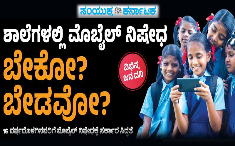 ಮೊಬೈಲ್ ನಿಷೇಧ ಕುರಿತು ರಾಜ್ಯ ಸರ್ಕಾರ ಗಂಭೀರ ಚಿಂತನೆ ನಡೆಸಿದೆ. ಶಿಕ್ಷಣ ತಜ್ಞರು, ಪಾಲಕರು ಮತ್ತು ಖಾಸಗಿ ಶಾಲೆಗಳ ಅಭಿಪ್ರಾಯಗಳ ಸಂಪೂರ್ಣ ವರದಿ ನಿಮ್ಮ ನೆಚ್ಚಿನ ಪತ್ರಿಕೆ ಸಂಯುಕ್ತ ಕರ್ನಾಟಕ ದಿನಪತ್ರಿಕೆಯಲ್ಲಿ.