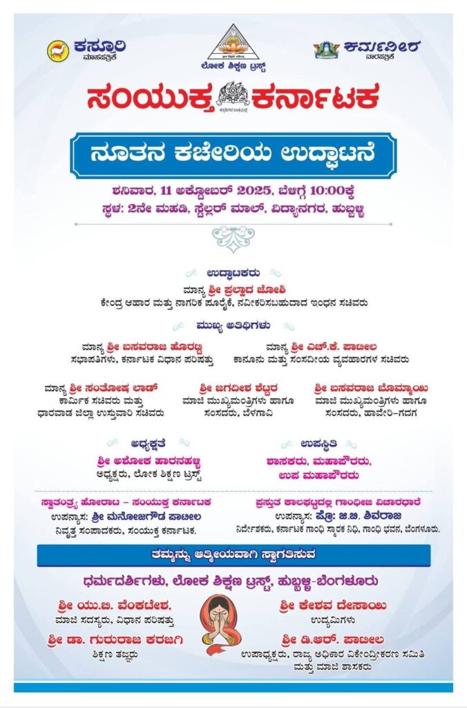 ಅವಳಿನಗರ ಹಾಗೂ ಜಿಲ್ಲೆಯ ಶಾಸಕರು, ಮೇಯರ್ ಮತ್ತು ಉಪಮೇಯರ್, ವಿವಿಧ ಜನಪ್ರತಿನಿಧಿಗಳು ಸೇರಿದಂತೆ ಗಣ್ಯರು ಭಾಗವಹಿಸಲಿದ್ದಾರೆ. ಲೋಕ ಶಿಕ್ಷಣ ಟ್ರಸ್ಟ್ ಅಧ್ಯಕ್ಷ ಅಶೋಕ ಹಾರನಹಳ್ಳಿ ಅಧ್ಯಕ್ಷತೆ ವಹಿಸಲಿದ್ದಾರೆ.