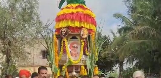 ನರಗುಂದ (ಗದಗ): ಕನ್ನಡ ರಾಜ್ಯೋತ್ಸವದ ಅಂಗವಾಗಿ ನರಗುಂದ ತಾಲೂಕಿನ ಭೈರನಹಟ್ಟಿ ಶ್ರೀದೊರೆಸ್ವಾಮಿ ವಿರಕ್ತಮಠದಲ್ಲಿ ಕನ್ನಡ ಭವ್ಯ ರಥೋತ್ಸವ ಕಾರ್ಯಕ್ರಮ ಶನಿವಾರ ನಡೆಯಿತು. ಈ ಸಂದರ್ಭದಲ್ಲಿ ಪಂಚಲೋಹದಿಂದ ನಿರ್ಮಿತ ಭುವನೇಶ್ವರಿ ತಾಯಿಯ ಮೂರ್ತಿಯನ್ನು ಅಲಂಕರಿಸಿ ರಥದಲ್ಲಿ ಇರಿಸಲಾಯಿತು. ಮಠದ ಆವರಣದಿಂದ ಹೊರಟ ಕನ್ನಡ ರಥೋತ್ಸವ ರಾಷ್ಟ್ರೀಯ ಹೆದ್ದಾರಿ 218ರ ಮಾರ್ಗವಾಗಿ ಸಾಗಿದ್ದು, ಬೈರನಹಟ್ಟಿ ಗ್ರಾಮದ ರಾಜಬೀದಿಯವರೆಗೆ ಮೆರವಣಿಗೆ ನಡೆಯಿತು. ಬ್ರಹ್ಮಾನಂದರ ದೇವಸ್ಥಾನವರೆಗೂ ಪಾದಯಾತ್ರೆ ರೂಪದಲ್ಲಿ ರಥವನ್ನು ಎಳೆದೊಯ್ದು ಪೂಜಾ ವಿಧಿಗಳನ್ನು ನೆರವೇರಿಸಲಾಯಿತು. ಸ್ಥಳೀಯರು ಹಣ್ಣು, ಕಾಯಿ ಸಮರ್ಪಣೆ ಮಾಡುತ್ತಾ … Continue reading ಭೈರನಹಟ್ಟಿ ಮಠದಲ್ಲಿ ಭುವನೇಶ್ವರಿ ರಥೋತ್ಸವ