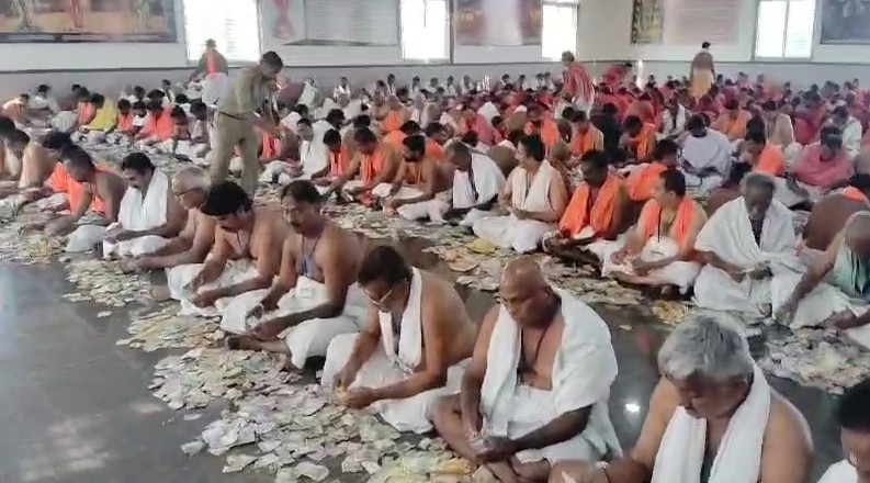 ರಾಯಚೂರು: ಮಂತ್ರಾಲಯದ ಶ್ರೀ ರಾಘವೇಂದ್ರ ಸ್ವಾಮಿಗಳವರ ಮಠದಲ್ಲಿ ಕಳೆದ 34 ದಿನಗಳಿಂದ ಶ್ರೀರಾಯರ ಹುಂಡಿಯಲ್ಲಿ ಭಕ್ತರು ಹಾಕಿರುವ ಕಾಣಿಕೆಯ ಹಣ ಎಣಿಕೆ ಕಾರ್ಯವನ್ನು ಶ್ರೀಮಠದ ಭಕ್ತರು, ಸೇವಾಕರ್ತರು ನಡೆಸಿದರು. ಒಟ್ಟು 5.41 ಕೋಟಿ ಹಣ ಸಂಗ್ರಹಣೆಯಾಗಿದೆ.