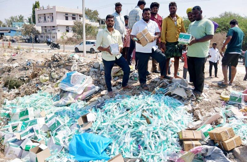 ಸಾರ್ವಜನಿಕರಿಂದ ಮಾಹಿತಿ ಪಡೆದು ಸ್ಥಳಕ್ಕೆ ಜಿಲ್ಲಾ ಆರೋಗ್ಯ ಮತ್ತು ಕುಟುಂಬ ಕಲ್ಯಾಣ ಅಧಿಕಾರಿ ಡಾ. ಸುರೇಂದ್ರ ಬಾಬು ಅವರು ಔಷಧ ನಿಯಂತ್ರಕ ಅಧಿಕಾರಿಗಳು ಹಾಗೂ ಸಿಬ್ಬಂದಿಯ ಜೊತೆಗೆ ಭೇಟಿ ನೀಡಿ ಪರಿಶೀಲನೆ ನಡೆಸಿದರು. ನಂತರ ಆರೋಗ್ಯ ಇಲಾಖೆಯ ಸಿಬ್ಬಂದಿ ಚೀಲಗಳಲ್ಲಿ ಸಿರೆಂಜ್ ಹಾಗೂ ಕಪ್ ಸಿರೆಪ್, ಔಷಧಿಗಳನ್ನು ಸಂಗ್ರಹಿಸಿಕೊಂಡು ತೆಗೆದುಕೊಂಡು ಹೋದರು.