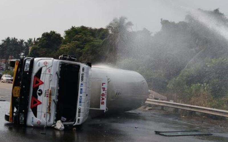 NH-66ರಲ್ಲಿ ಗ್ಯಾಸ್ ಟ್ಯಾಂಕರ್ ಅಪಘಾತ: ಕೆಲಕಾಲ ಸಂಚಾರ ಅಸ್ತವ್ಯಸ್ತ