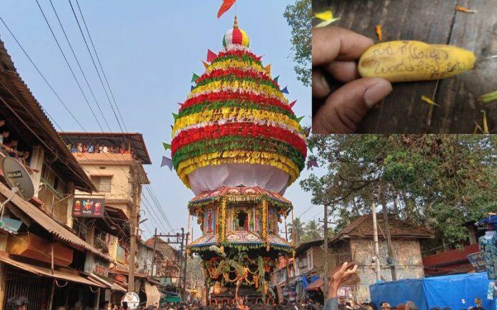 ಬುಧವಾರ ಸಂಜೆ ಸಹಸ್ರಾರು ಭಕ್ತರ ಜಯಘೋಷದೊಂದಿಗೆ ವಿಜೃಂಭಣೆಯಿಂದ ಮಹಾಬಲೇಶ್ವರ ಮಹಾರಥೋತ್ಸವ ಜರುಗಿತು. ಈ ವೇಳೆ ಭಕ್ತರು ತಮ್ಮ ಇಷ್ಟಾರ್ಥ ಸಿದ್ಧಿಗೆ ಪ್ರಾರ್ಥಿಸಿ ಬಾಳೆ ಹಣ್ಣು, ಕಡಲೆ ಎಸೆಯುವುದು ಸಾಮಾನ್ಯವಾಗಿತ್ತು. ಆದರೆ, ಅದರಲ್ಲಿ ಭಕ್ತರೋರ್ವರು ಬಾಳೆಹಣ್ಣಿನಲ್ಲಿ ಬರೆದು ಎಸೆದಿರುವುದು ಗಮನ ಸೆಳೆಯಿತು.