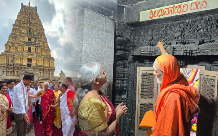 ಹಂಪಿ ವಿರೂಪಾಕ್ಷ ದೇವಸ್ಥಾನಕ್ಕೆ ಸಚಿವೆ ನಿರ್ಮಲಾ ಸೀತಾರಾಮನ್ ಭೇಟಿ
