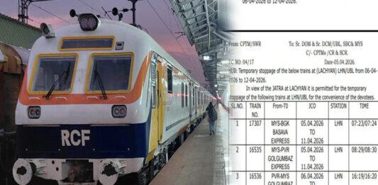 ವಿಜಯಪುರ: ವಿಜಯಪುರ ಜಿಲ್ಲೆಯ ಇಂಡಿ ತಾಲೂಕಿನ ಲಚ್ಯಾಣ ಗ್ರಾಮದಲ್ಲಿ ನಡೆಯಲಿರುವ ಶ್ರೀ ಶಂಕರಲಿಂಗೇಶ್ವರ ಜಾತ್ರಾ ಮಹೋತ್ಸವದ ಹಿನ್ನೆಲೆಯಲ್ಲಿ ರೈಲು ಪ್ರಯಾಣಿಕರಿಗೆ ಮಹತ್ವದ ಸೌಲಭ್ಯ ಕಲ್ಪಿಸಲಾಗಿದೆ. ಕೇಂದ್ರ ರೈಲ್ವೆ ರಾಜ್ಯ ಸಚಿವ ವಿ. ಸೋಮಣ್ಣ ಅವರು ಈ ಕುರಿತು ಮಾಹಿತಿ ನೀಡಿದ್ದಾರೆ. ಸಾಮಾಜಿಕ ಜಾಲತಾಣದಲ್ಲಿ ಪೋಸ್ಟ್ ಮಾಡಿರುವ ಅವರು, ಲಚ್ಯಾಣ ರೈಲು ನಿಲ್ದಾಣದಲ್ಲಿ ಏಪ್ರಿಲ್ 5 ರಿಂದ ಏಪ್ರಿಲ್ 12, 2026ರವರೆಗೆ ಕೆಲವು ಪ್ರಮುಖ ರೈಲುಗಳಿಗೆ ತಾತ್ಕಾಲಿಕ ನಿಲುಗಡೆಗೆ ಅನುಮತಿ ನೀಡಲಾಗಿದೆ ಎಂದು ತಿಳಿಸಿದ್ದಾರೆ. ಯಾವ ರೈಲುಗಳಿಗೆ ನಿಲುಗಡೆ? … Continue reading ಲಚ್ಯಾಣ ಜಾತ್ರೆ ಹಿನ್ನೆಲೆ ವಿಶೇಷ ರೈಲು ನಿಲುಗಡೆ: ವಿ.ಸೋಮಣ್ಣ