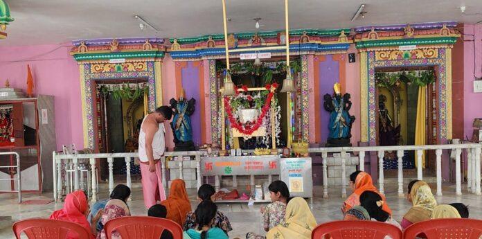 ‘ರಾಮ ರಾಮ’ ಎಂದು ಜಪಿಸುತ್ತಾ ಮಹಿಳೆಯರು, ಮಕ್ಕಳು ಹಾಗೂ ಯುವಕರು ಬಾಲಾಜಿ ಮಂದಿರದಲ್ಲಿ ರಾಮ ಜಪ ಮಾಡಿದರು. ಆರತಿ, ನೈವೇದ್ಯ ನೆರವೇರಿಸಿದರು. ನೈವೇದ್ಯಯಲ್ಲಿ ಶೀರ್ಖಂಡ, ಪಂಚಾಮೃತ, ಹಣ್ಣುಗಳು ಇರಿಸಲಾಗಿತ್ತು. ಪ್ರತಿ ಮಹಿಳೆಯರು ಭಕ್ತಿಪೂರ್ವಕವಾಗಿ ರಾಮ ನಾಮ ಗೀತೆಗಳ ಹಾಡಿ, ಆರತಿ ಬೆಳಗಿದರು. ನೆರೆದ ಭಕ್ತರು ಕೈ ಕೈ ಸೇರಿಸಿ ರಾಮ ನಾಮ‌ ಜಪಿಸಿದರು.