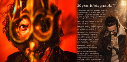 ಚಿತ್ರರಂಗದ 3 ದಶಕಗಳ ಸಂಭ್ರಮದಲ್ಲಿ ಸುದೀಪ್ ಭಾವುಕ ಪತ್ರ