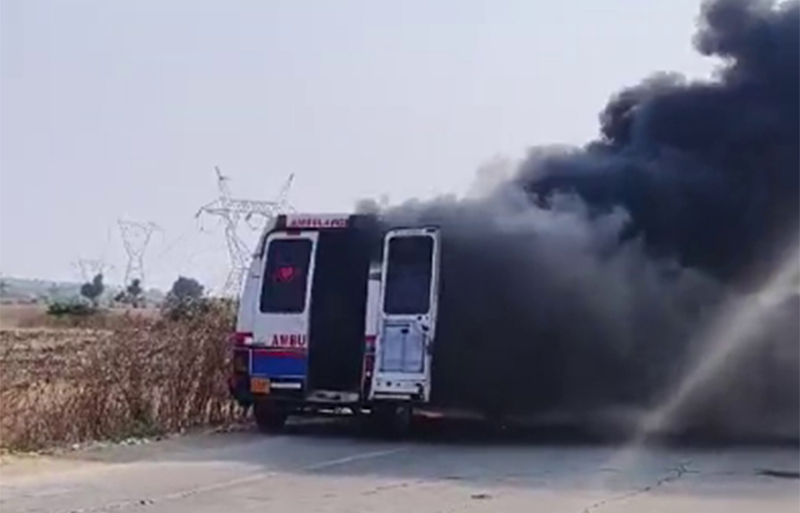 ಮೃತದೇಹ ಸಾಗಿಸುತ್ತಿದ್ದ ಆ್ಯಂಬುಲೆನ್ಸ್‌ನಲ್ಲಿ ಬೆಂಕಿ