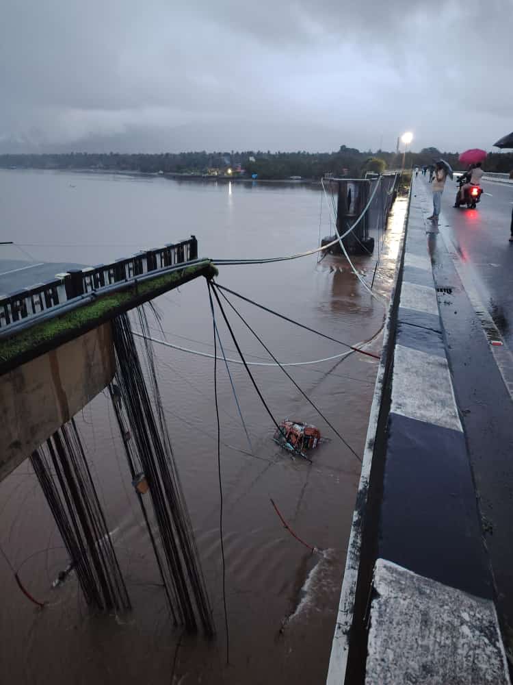 ತಡರಾತ್ರಿ ನಡೆದ ಈ ದುರಂತದಲ್ಲಿ ಸೇತುವೆ ಕುಸಿದ ಬೆನ್ನಲ್ಲೆ ಟ್ರಕ್ ಕೂಡ ನದಿಗೆ ಬಿದ್ದಿದೆ. ಟ್ರಕ್ ಸಂಪೂರ್ಣ ಮುಳುಗಡೆಯಾಗಿದ್ದು ಟ್ರಕ್ ಕ್ಯಾಬಿನ್ ಮಾತ್ರ ನೀರಿನಲ್ಲಿ ಕಾಣತೊಡಗಿದೆ. ಗಾಯಗೊಂಡಿರುವ ಲಾರಿ ಚಾಲಕ ನೀರಿನಿಂದ ಹೊರಬಂದು ಲಾರಿ ಕ್ಯಾಬಿನ್ ಏರಿ ಸಹಾಯಕ್ಕಾಗಿ ಎದುರು ನೋಡುತ್ತಿದ್ದಾಗ ವಿಷಯ ತಿಳಿದ ತಕ್ಷಣ ಕಾರ್ಯಪ್ರವೃತ್ತರಾಗಿ ಆಗಮಿಸಿದ ಪೊಲೀಸರು ಹಾಗೂ ಮೀನುಗಾರರು ದೋಣಿಯನ್ನು ಕೊಂಡೊಯ್ದು ಆತನನ್ನು ದಡಕ್ಕೆ ಕರೆ ತಂದು ಕೂಡಲೇ ಕ್ರೀಮ್ಸ್ ಆಸ್ಪತ್ರೆಗೆ ದಾಖಲಿಸಿದ್ದಾರೆ. ಲಾರಿ ಚಾಲಕನನ್ನು ಕೇರಳ ಮೂಲದ ರಾಧಾಕೃಷ್ಣ ನಾಳಾ ಸ್ವಾಮಿ (37) ಎಂದು ಗುರುತಿಸಲಾಗಿದೆ.