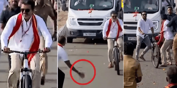 ತಮಿಳುನಾಡು ರಾಜಕೀಯ ಅಖಾಡದಲ್ಲಿ ದಳಪತಿ ವಿಜಯ್ ಅವರ ಎಂಟ್ರಿ ಈಗಾಗಲೇ ದೊಡ್ಡ ಸಂಚಲನ ಸೃಷ್ಟಿಸಿದೆ. ಸಿನಿಮಾ ಪರದೆಯ ಮೇಲೆ ನೂರಾರು ವಿಲನ್ಗಳನ್ನು ಸಲೀಸಾಗಿ ಎದುರಿಸುವ ವಿಜಯ್, ಈಗ ಜನರ ನಡುವೆ ಬಂದು ರಾಜಕೀಯ ಸಮರಕ್ಕೆ ಸಿದ್ಧರಾಗುತ್ತಿದ್ದಾರೆ. ಆದರೆ ಇತ್ತೀಚೆಗೆ ಕನ್ಯಾಕುಮಾರಿಯಲ್ಲಿ ನಡೆದ ಒಂದು ಘಟನೆ ಇಡೀ ಸೋಷಿಯಲ್ ಮೀಡಿಯಾದಲ್ಲಿ ಚರ್ಚೆಗೆ ಗ್ರಾಸವಾಗಿದೆ. ತಮ್ಮ ಟಿವಿಕೆ ಪಕ್ಷದ ಪ್ರಚಾರದ ಭಾಗವಾಗಿ ವಿಜಯ್ ಅವರು ಕನ್ಯಾಕುಮಾರಿಯ ಹೆದ್ದಾರಿಯಲ್ಲಿ ಸೈಕಲ್ ರೈಡ್ ಆಯೋಜಿಸಿದ್ದರು. ಸಾವಿರಾರು ಅಭಿಮಾನಿಗಳು ರಸ್ತೆಯ ಎರಡೂ ಬದಿಯಲ್ಲಿ ಜಮಾಯಿಸಿ ತಮ್ಮ ನೆಚ್ಚಿನ ನಟನಿಗೆ ಜೈಕಾರ ಹಾಕುತ್ತಿದ್ದರು. ಬಿಗಿ ಭದ್ರತೆಯ ನಡುವೆಯೇ ವಿಜಯ್ ಸೈಕಲ್ ತುಳಿಯುತ್ತಾ ಜನರತ್ತ ಕೈ ಬೀಸುತ್ತಾ ಸಾಗುತ್ತಿದ್ದರು.