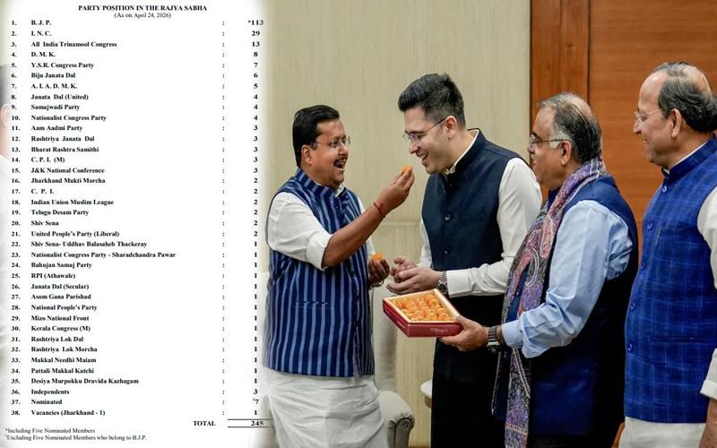 AAP ಪಕ್ಷದ 7 ರಾಜ್ಯಸಭಾ ಸಂಸದರು BJPಗೆ ವಿಲೀನಗೊಂಡಿದ್ದು. ರಾಜ್ಯಸಭಾ ಅಧ್ಯಕ್ಷರು ಒಪ್ಪಿಗೆ ಸೂಚಿಸಿದ್ದಾರೆ. ಇದರೊಂದಿಗೆ ಬಿಜೆಪಿ ಸಂಖ್ಯಾಬಲ 113ಕ್ಕೆ ಏರಿಕೆ.