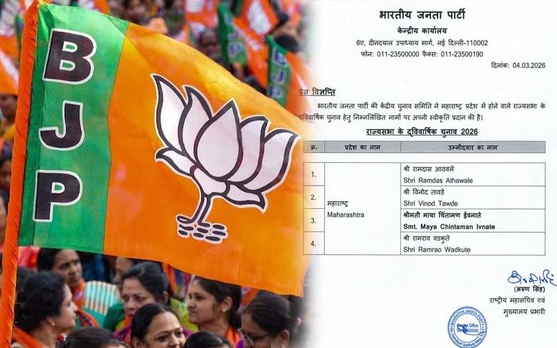 ಮುಂಬೈ: ಮಹಾರಾಷ್ಟ್ರದಿಂದ ರಾಜ್ಯಸಭೆಗೆ ಆಯ್ಕೆಯಾಗಲಿರುವ ಏಳು ಸ್ಥಾನಗಳಿಗಾಗಿ Bharatiya Janata Party (ಬಿಜೆಪಿ) ತನ್ನ ಅಭ್ಯರ್ಥಿಗಳ ಪಟ್ಟಿಯನ್ನು ಪ್ರಕಟಿಸಿದೆ. ಪಕ್ಷವು ರಾಮದಾಸ್ ಅಠವಳೆ, ವಿನೋದ್ ತಾವಡೆ, ಮಾಯಾ ಚಿಂತಾಮನ್ ಇವ್ನಾಟೆ ಹಾಗೂ ರಾಮರಾವ್ ವಾಡ್ಕುಟೆ ಅವರನ್ನು ಕಣಕ್ಕಿಳಿಸಿದೆ.