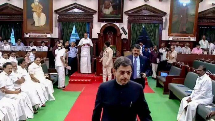 ಚೆನ್ನೈ: ತಮಿಳುನಾಡು ವಿಧಾನಸಭೆಯ ಅಧಿವೇಶನದಲ್ಲಿ ಮಂಗಳವಾರ ರಾಜ್ಯಪಾಲ ಆರ್.ಎನ್. ರವಿ ಅವರು ರಾಜ್ಯ ಸರ್ಕಾರ ಸಿದ್ಧಪಡಿಸಿದ್ದ ಭಾಷಣವನ್ನು ಓದದೇ ವಿಧಾನಸಭೆಯಿಂದ ಹೊರನಡೆದಿದ್ದಾರೆ. ಇದರೊಂದಿಗೆ ಸತತ ಮೂರನೇ ವರ್ಷವೂ ರಾಜ್ಯಪಾಲರು ಸರ್ಕಾರದ ಅಧಿಕೃತ ಭಾಷಣವನ್ನು ಓದಲು ನಿರಾಕರಿಸಿದಂತಾಗಿದೆ.