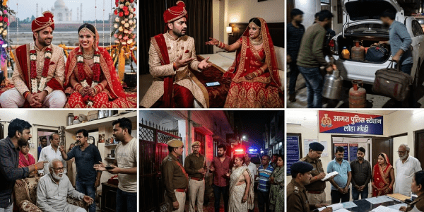 ಸಕಾಲದಲ್ಲಿ ಪೊಲೀಸರು ಸ್ಥಳಕ್ಕೆ ಆಗಮಿಸಿದ ಕಾರಣ ಒಂದು ದೊಡ್ಡ ದುರಂತ ತಪ್ಪಿತು. ವಿಚಾರಣೆಯ ಸಮಯದಲ್ಲಿ ಈ ಇಡೀ ವಿವಾಹವು ಕೇವಲ ಹಣ ಲೂಟಿ ಮಾಡಲು ರೂಪಿಸಿದ ಸಂಚು ಎಂಬ ಕಹಿ ಸತ್ಯ ಹೊರಬಂತು. ಈ ಮದುವೆಯ ಹಿಂದಿದ್ದ ಮಧ್ಯಸ್ಥಿಕೆಗಾರ ಮುನ್ನಾ ಮಾಸ್ಟರ್, ತಾನೇ ಉದ್ದೇಶಪೂರ್ವಕವಾಗಿ ಈ ಕುಟುಂಬವನ್ನು ಗುರಿ ಮಾಡಿ ವಿವಾಹ ನಿಶ್ಚಯಿಸಿದ್ದಾಗಿ ಒಪ್ಪಿಕೊಂಡಿದ್ದಾನೆ. ಪ್ರೀತಿಯ ಸಂಕೇತವಾದ ತಾಜ್ ಮಹಲ್ ಸಾಕ್ಷಿಯಾಗಿ ಆರಂಭವಾಗಬೇಕಿದ್ದ ಒಂದು ದಾಂಪತ್ಯ ಜೀವನ, ಇಂದು ಸುಲಿಗೆ ಮತ್ತು ಕ್ರೌರ್ಯದ ಕಥೆಯಾಗಿ ಪೊಲೀಸ್ ಠಾಣೆಯ ಮೆಟ್ಟಿಲೇರಿದೆ.