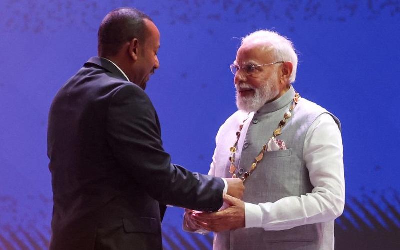 ಭಾರತ–ಇಥಿಯೋಪಿಯಾ ದ್ವೈಪಕ್ಷಿಕ ಸಂಬಂಧಗಳನ್ನು ಹೊಸ ಎತ್ತರಕ್ಕೆ ಕೊಂಡೊಯ್ದ ಮಹತ್ವದ ಕ್ಷಣದಲ್ಲಿ, ಪ್ರಧಾನಿ ನರೇಂದ್ರ ಮೋದಿ ಅವರಿಗೆ ಇಥಿಯೋಪಿಯಾ ರಾಷ್ಟ್ರದ ಅತ್ಯನ್ನತ ನಾಗರಿಕ ಪ್ರಶಸ್ತಿಯಾದ ‘ದಿ ಗ್ರೇಟ್ ಆನರ್ ನಿಶಾನ್ ಆಫ್ ಇಥಿಯೋಪಿಯಾ’ ಪ್ರದಾನ ಮಾಡಿ ಗೌರವಿಸಲಾಗಿದೆ.