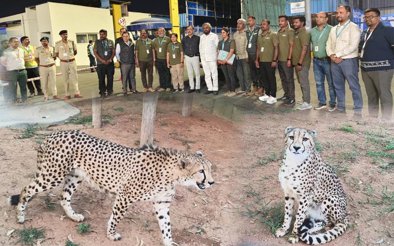ಕಲಬುರಗಿ ಕಾರ್ಯಕ್ರಮ ಮುಗಿಸಿಕೊಂಡು ಹೈದ್ರಾಬಾದ್ ಮಾರ್ಗವಾಗಿ ಬೆಂಗಳೂರಿಗೆ ತಲುಪಿದ ಸಚಿವರು, ನೇರವಾಗಿ ವಿಮಾನ ನಿಲ್ದಾಣದ ಸರಕು ಸಾಗಣೆ ವಿಭಾಗಕ್ಕೆ ತೆರಳಿ ಚೀತಾಗಳನ್ನು ಪರಿಶೀಲಿಸಿದರು. ಬಳಿಕ ಈ ಚೀತಾಗಳನ್ನು ಸುರಕ್ಷಿತವಾಗಿ ಬನ್ನೇರುಘಟ್ಟ ಜೈವಿಕ ಉದ್ಯಾನವನಕ್ಕೆ (Bannerghatta Biological Park) ಸಾಗಿಸಲಾಯಿತು.