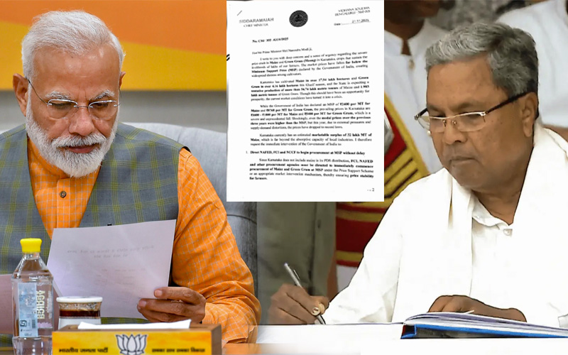 ಬೆಂಗಳೂರು: ಮೆಕ್ಕೆಜೋಳ ಮತ್ತು ಹೆಸರುಕಾಳು ಬೆಳೆಗಾರರು ಎದುರಿಸುತ್ತಿರುವ ಸಮಸ್ಯೆಗಳ ಕುರಿತು ಮುಖ್ಯಮಂತ್ರಿ ಸಿದ್ದರಾಮಯ್ಯ ಅವರು ಪ್ರಧಾನಿ ನರೇಂದ್ರ ಮೋದಿ ಅವರಿಗೆ ಪತ್ರ ಬರೆದು ಹಲವು ವಿಷಯಗಳಿಗೆ ಪರಿಹಾರ ಕ್ರಮಗಳನ್ನು ಕೈಗೊಳ್ಳಲು ಒತ್ತಾಯಿಸಿದ್ದಾರೆ.
