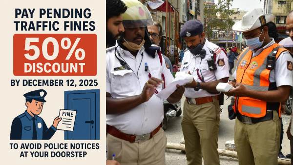 ಸಂಚಾರಿ ನಿಯಮ ಉಲ್ಲಂಘಿಸಿ ದಂಡದ ಬಾಕಿ ಉಳಿಸಿಕೊಂಡಿರುವ ವಾಹನ ಸವಾರರಿಗೆ ರಾಜ್ಯ ಸರ್ಕಾರ ಮತ್ತು ಪೊಲೀಸ್ ಇಲಾಖೆ ಮಹತ್ವದ ಸಿಹಿ ಸುದ್ದಿಯ ಜೊತೆಗೆ ಖಡಕ್ ಎಚ್ಚರಿಕೆಯನ್ನೂ ನೀಡಿದೆ. ಸಂಚಾರಿ ನಿಯಮ ಉಲ್ಲಂಘನೆಯ ದಂಡವನ್ನು ಪಾವತಿಸಲು ಸರ್ಕಾರವು ಮತ್ತೊಮ್ಮೆ ಶೇ. 50ರಷ್ಟು ರಿಯಾಯಿತಿ (50% Discount) ಘೋಷಿಸಿದ್ದು, ವಾಹನ ಸವಾರರು ಈ ಸುವರ್ಣಾವಕಾಶವನ್ನು ತಪ್ಪದೇ ಬಳಸಿಕೊಳ್ಳಬೇಕಿದೆ.
