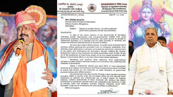 ರಾಜ್ಯದಲ್ಲಿ ಆರ್.ಎಸ್.ಎಸ್ ಚಟುವಟಿಕೆಗಳಿಗೆ ನಿರ್ಬಂಧ ಹೇರಲು ಸರ್ಕಾರ ಮುಂದಾಗಿರುವ ಬೆನ್ನಲ್ಲೇ, ವಿಜಯಪುರ ಶಾಸಕ ಬಸನಗೌಡ ಪಾಟೀಲ್ ಯತ್ನಾಳ್ ಮುಖ್ಯಮಂತ್ರಿ ಸಿದ್ದರಾಮಯ್ಯಗೆ ಪತ್ರ ಬರೆದು ಹೊಸ ವಿವಾದಕ್ಕೆ ನಾಂದಿ ಹಾಡಿದ್ದಾರೆ. ಅನುಮತಿಯಿಲ್ಲದೆ ಸಾರ್ವಜನಿಕ ರಸ್ತೆಗಳು, ಸರ್ಕಾರಿ ಆವರಣಗಳು ಮತ್ತು ಸಾರ್ವಜನಿಕ ಸ್ಥಳಗಳಲ್ಲಿ ನಡೆಯುವ ನಮಾಜ್ಗಳನ್ನು ನಿಷೇಧಿಸುವಂತೆ ಯತ್ನಾಳ್ ತಮ್ಮ ಪತ್ರದಲ್ಲಿ ಆಗ್ರಹಿಸಿದ್ದಾರೆ.