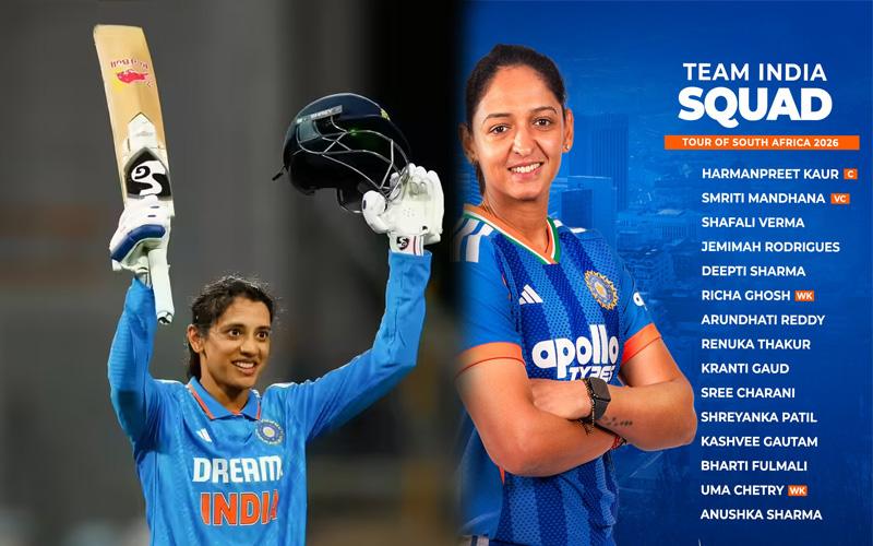 ನವದೆಹಲಿ: ದಕ್ಷಿಣ ಆಫ್ರಿಕಾ ವಿರುದ್ಧ ನಡೆಯಲಿರುವ ಐದು ಪಂದ್ಯಗಳ ಟಿ20ಐ ಸರಣಿಗಾಗಿ BCCI ಭಾರತ ಮಹಿಳಾ ತಂಡವನ್ನು ಪ್ರಕಟಿಸಿದ್ದು, ತಂಡದ ನಾಯಕತ್ವವನ್ನು ಹರ್ಮನ್ಪ್ರೀತ್ ಕೌರ್ ವಹಿಸಲಿದ್ದಾರೆ. ಉಪನಾಯಕಿಯಾಗಿ ಸ್ಟಾರ್ ಬ್ಯಾಟರ್ ಸ್ಮೃತಿ ಮಂಧಾನ ನೇಮಕವಾಗಿದ್ದಾರೆ.